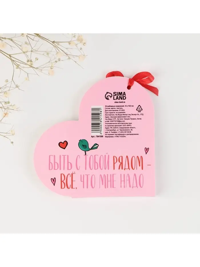 Валентинка открытка на 14 февраля «Почему я тебя люблю», 10 шт., 12×10 см