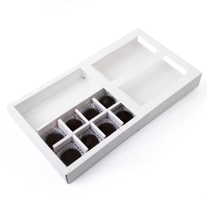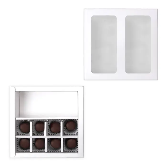 Коробка для 8 конфет + шоколад, с окном, белая, 17.7×17.8×3.8 см