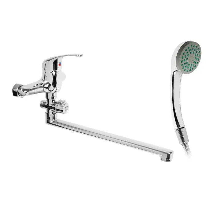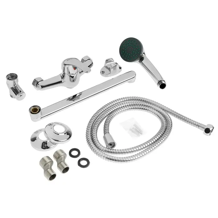 В комплект входит душевой набор, что делает его практичным выбором для ванной комнаты.