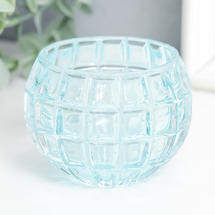 Подсвечник стекло "Бочонок" d-4,5 см голубой 7,5х7,5х6 см