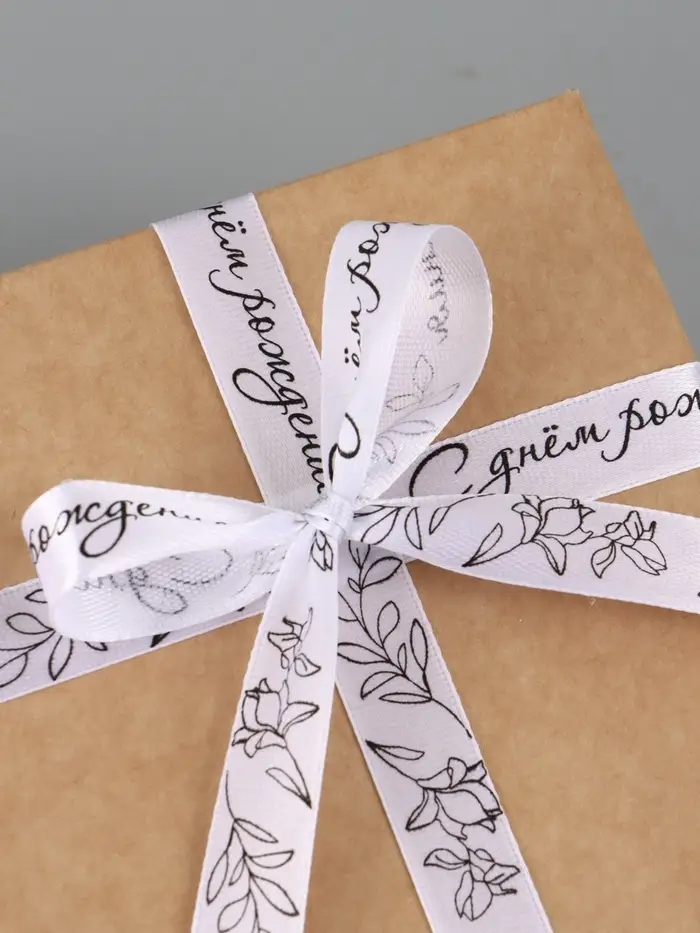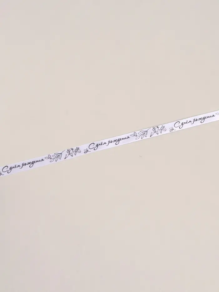Лента атласная «С днём рождения», 15 мм, 23±1 м, белая №001
