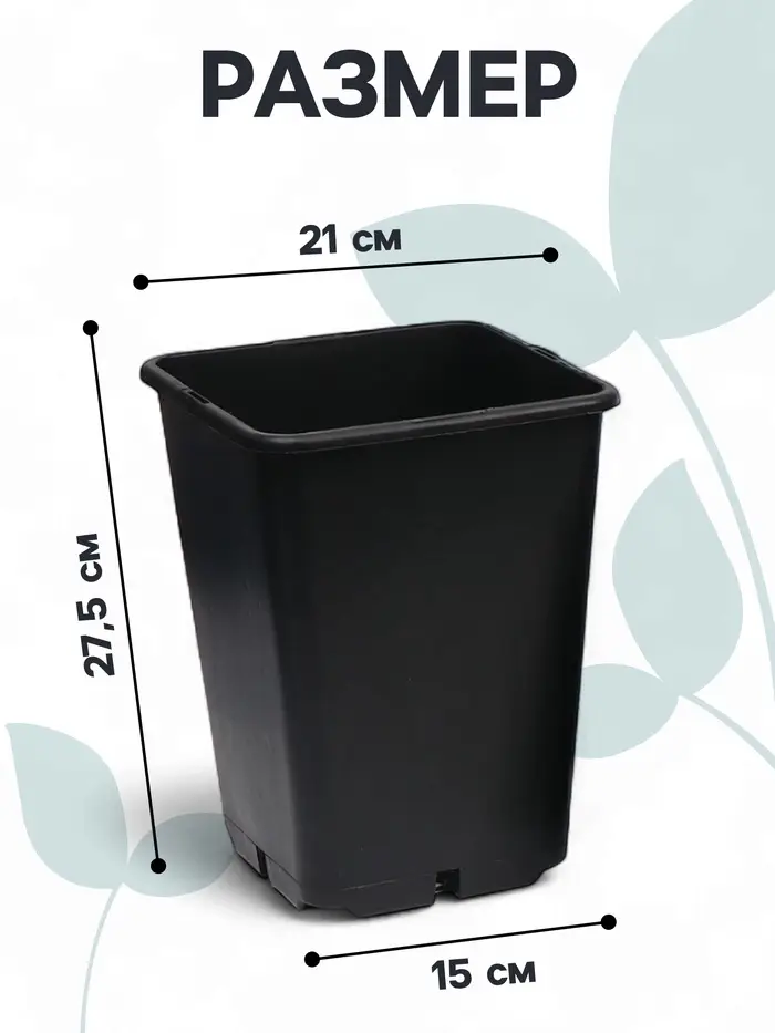 Горшок для рассады, 7 л, 21×21×27.5 см, чёрный