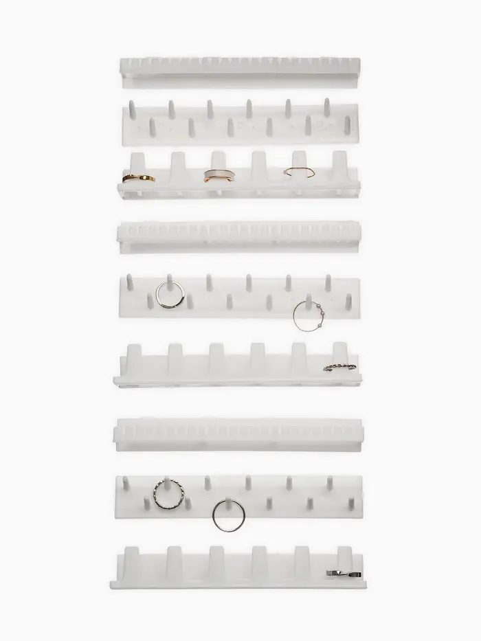 - Лаконичный дизайн: Универсальный белый цвет и минималистичный стиль позволяют органайзеру гармонично вписаться в любой интерьер, не отвлекая внимания от самих украшений.
