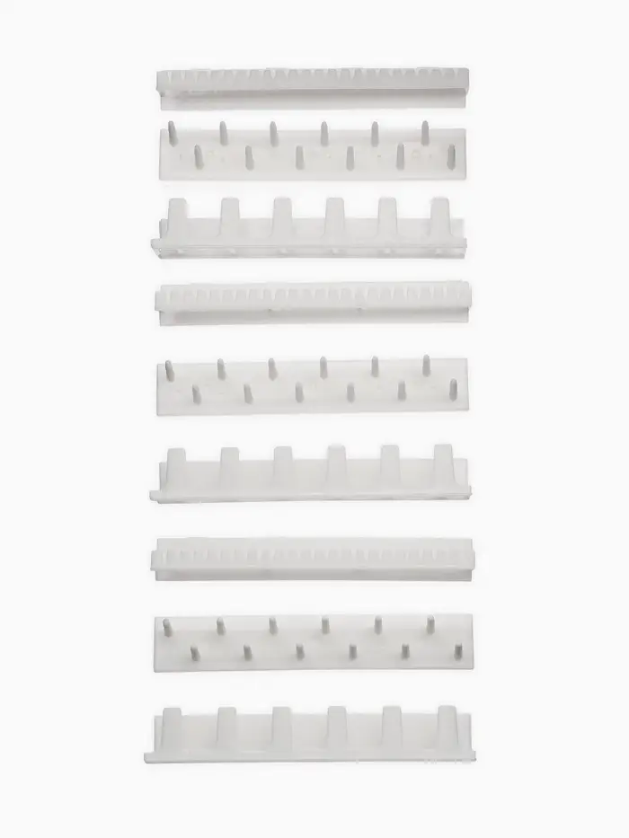 - Бережное хранение: Пластиковые держатели имеют гладкую поверхность, которая не царапает изделия и надежно удерживает их на месте.