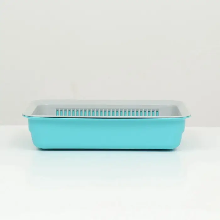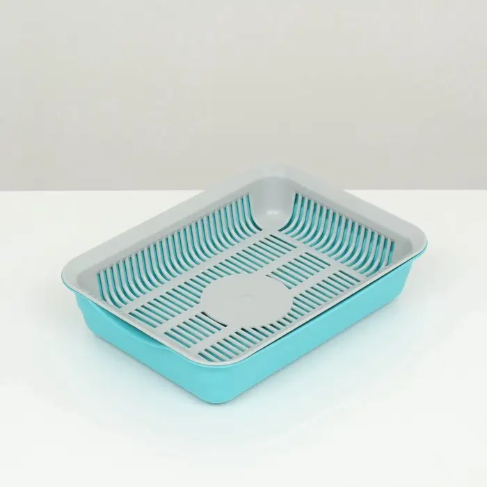 Туалет для кошек, 34.5×25.5×7.5 с, с сеткой, пластик, серый, бирюзовый