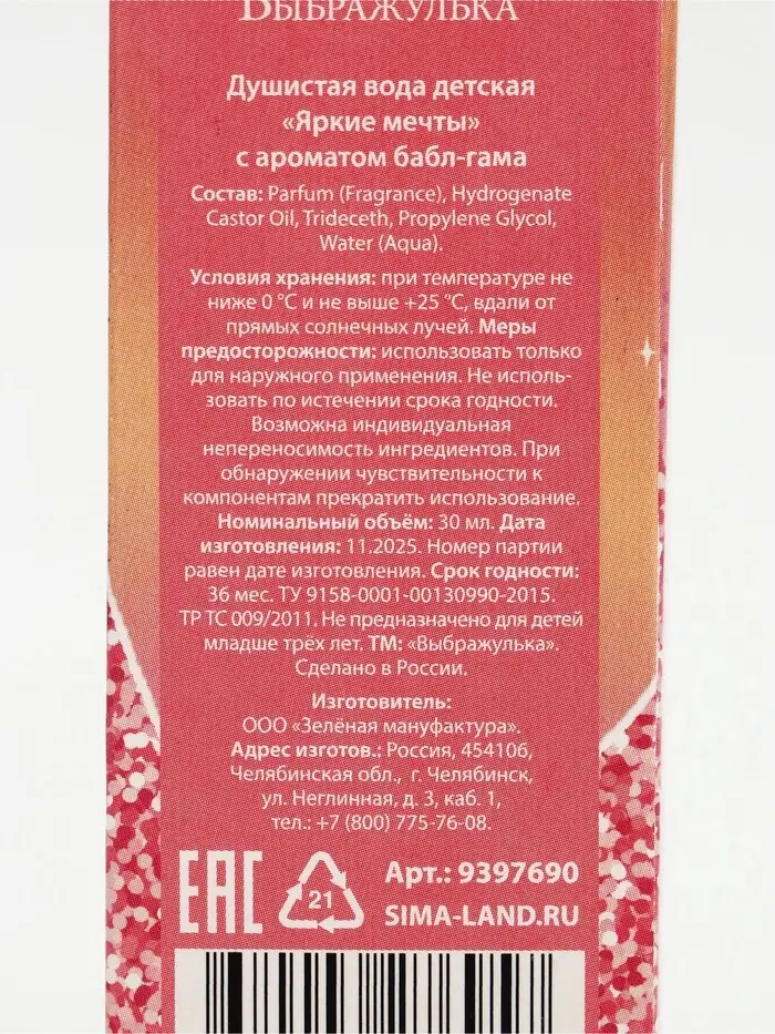 Душистая вода детская «Яркие мечты»