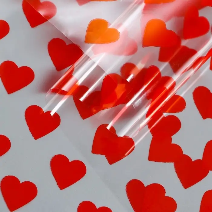 - Универсальность применения: Плёнка подходит не только для живых цветов. В неё можно упаковать подарки, сувениры, коробки конфет, мягкие игрушки — любой презент ко Дню влюблённых приобретёт тематическое настроение.