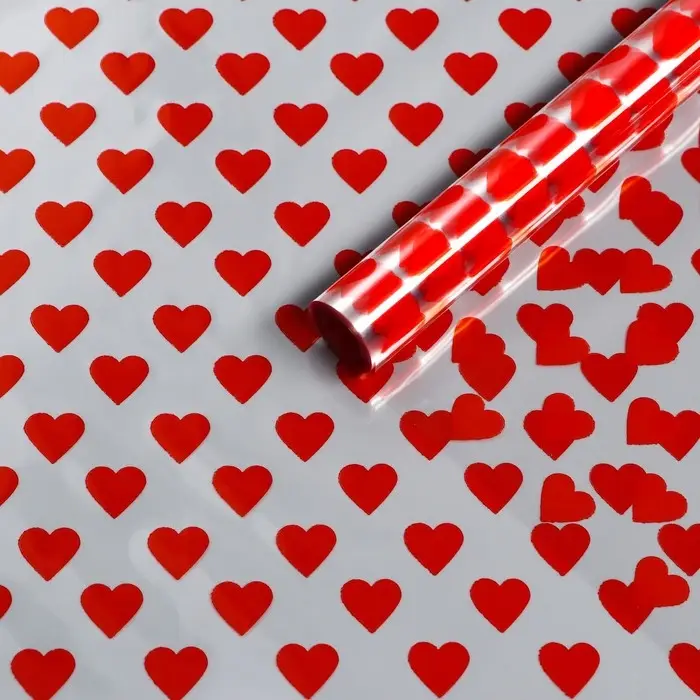 Пленка цветная «Сердца», красная, 0.7×7.6 м, 40 мкм, 200 г