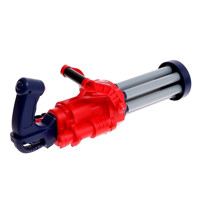 - Оружие имеет ручной механизм запуска пуль при нажатии кнопки на рукоятке.