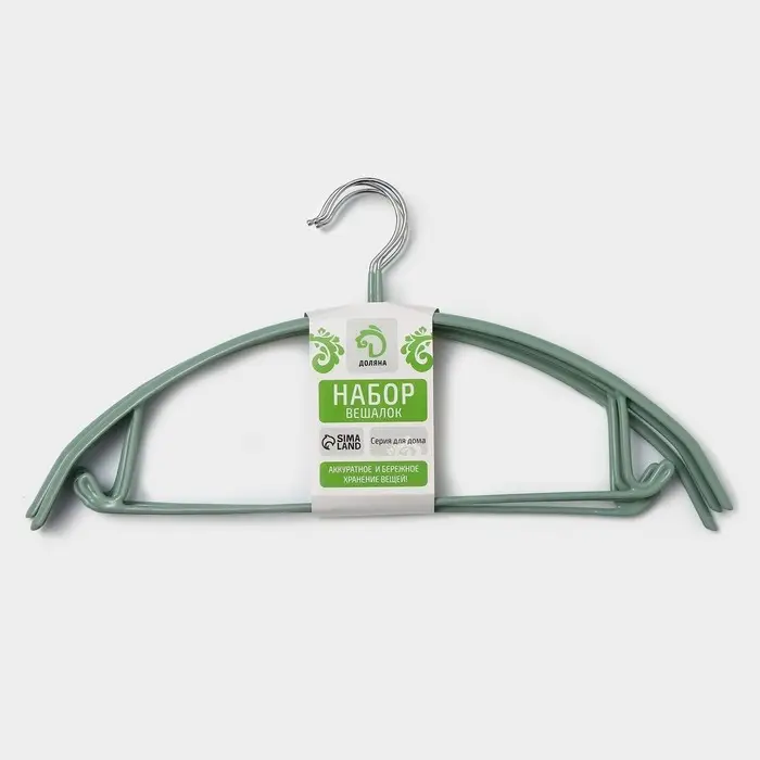 Плечики - вешалки для одежды Доляна «Мята», 42×20 см, 3 шт., антискользящее покрытие, зелёные