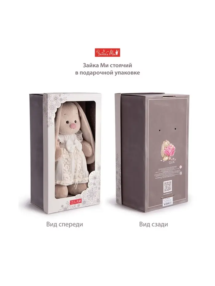 - Зайка упакована в красивую коробку, поэтому подойдёт в качестве готового подарка.