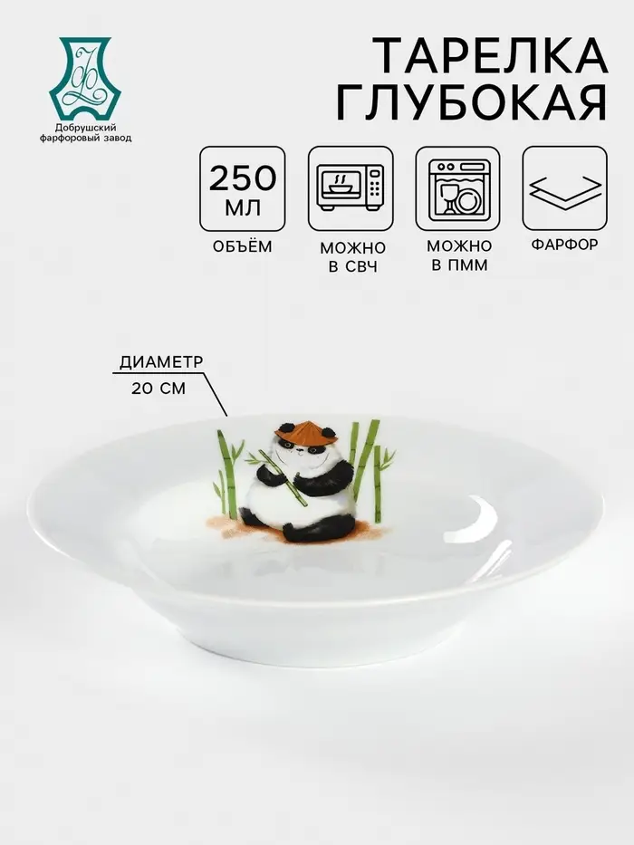 Тарелка глубокая Добрушский завод «Панда», 250 мл, d=20 см, фарфор, белая