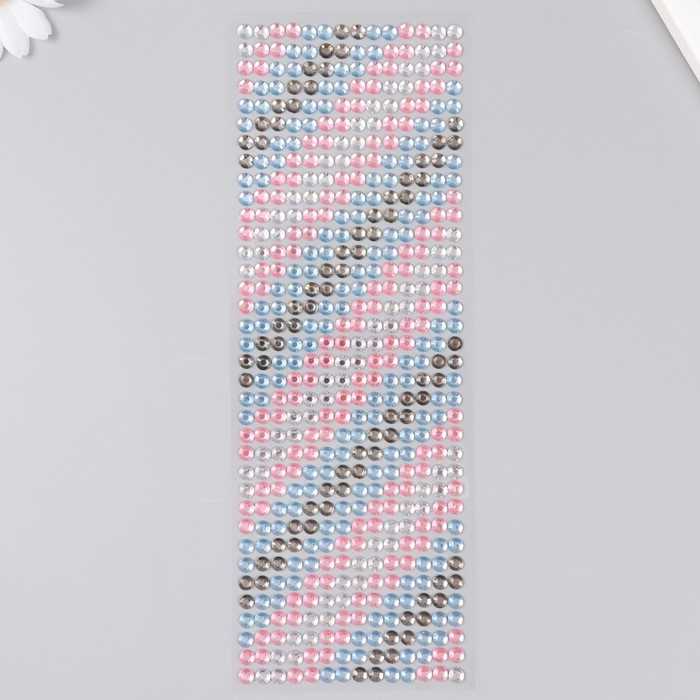 Стразы самоклеющиеся d 6 мм, серебро, розовый, голубой