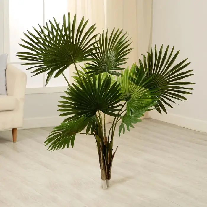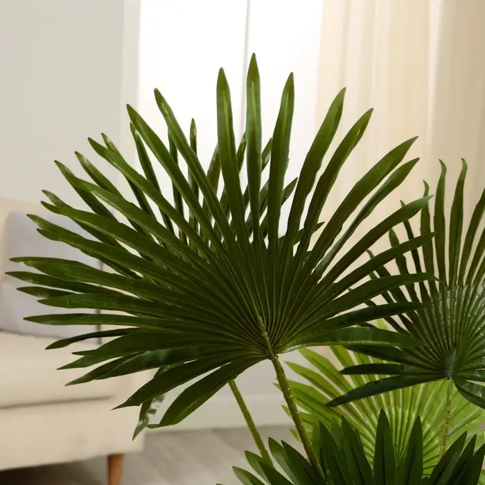 - Гипоаллергенность: в отличие от живых растений, искусственная ливистона не вызывает аллергических реакций, что делает её идеальным выбором для семей с детьми или аллергиками.