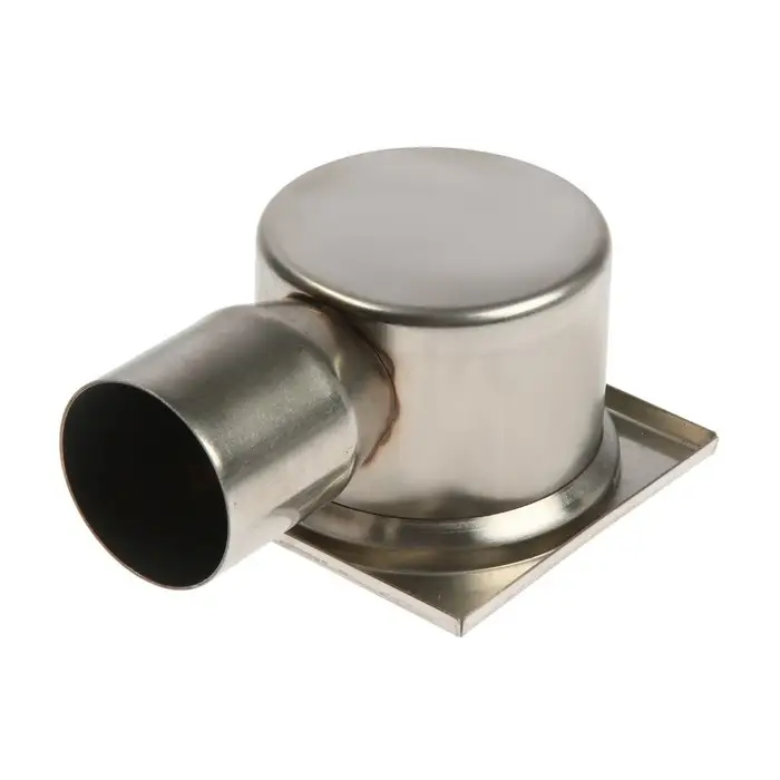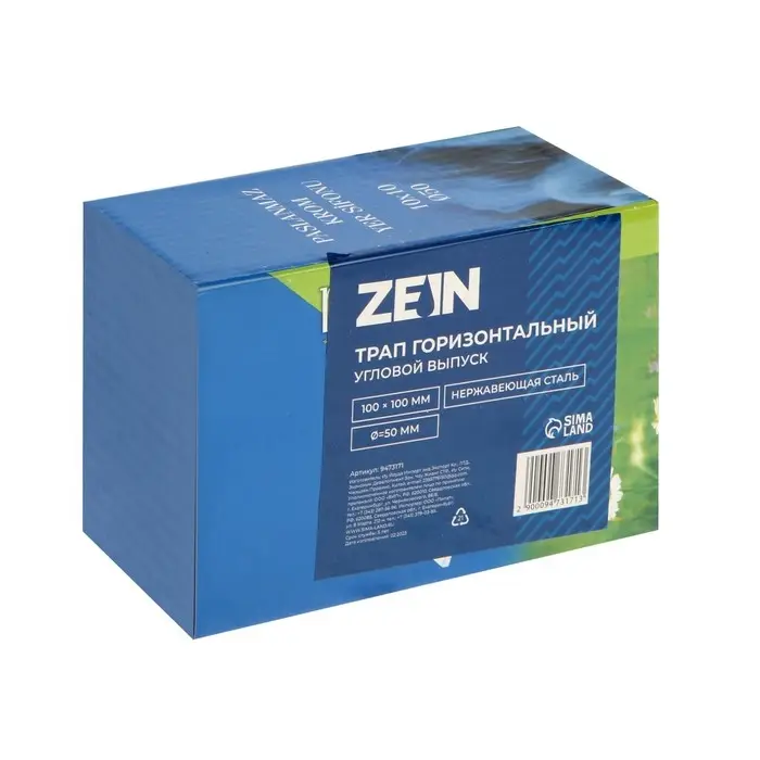 Трап ZEIN engr, 100×100 мм, горизонтальный, d=50 мм, угловой выпуск, нержавеющая сталь