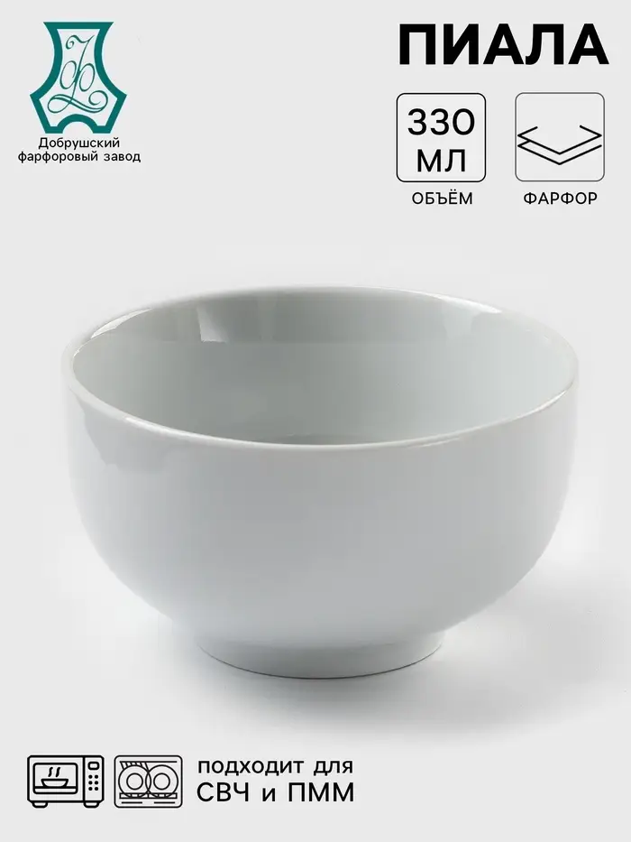 Пиала Добрушский завод «Бельё», 330 мл, d=11 см, фарфор, белая