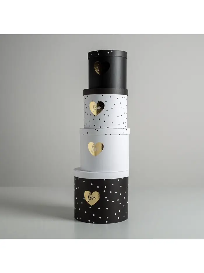Набор коробок для цветов 4 в 1, упаковка подарочная, «Чёрно-белый», 14×14×13 см - 20×20×17.5 см
