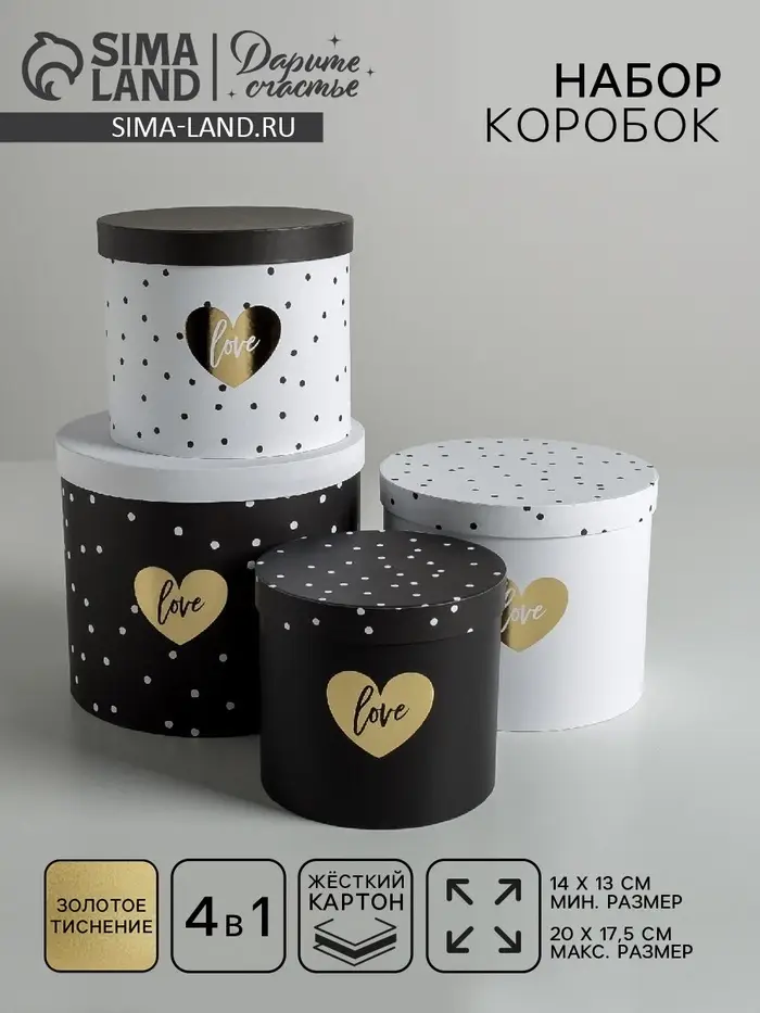 Коробки, Наборы коробок, Коробки-тубусы, Жёсткие (крышка+дно), Круглые