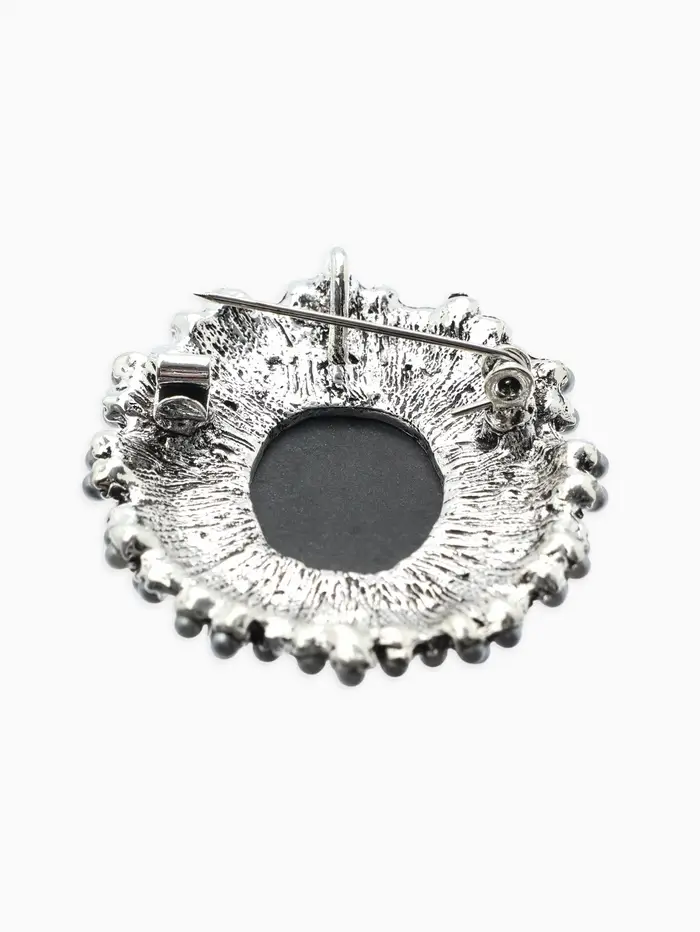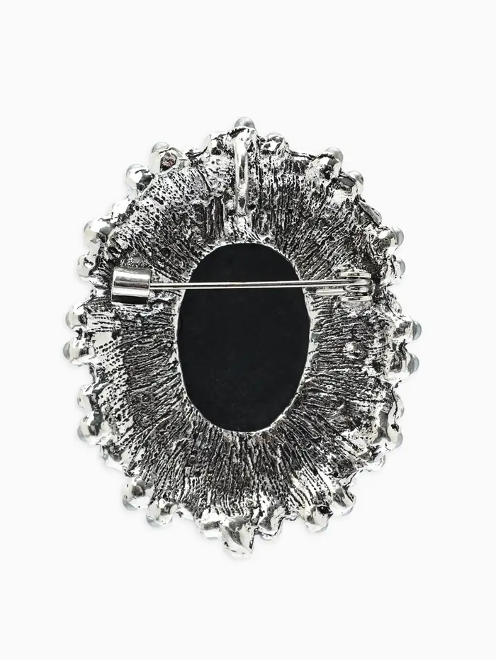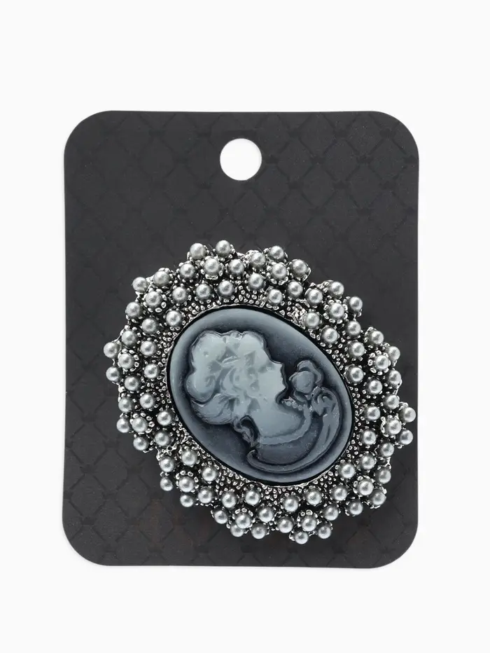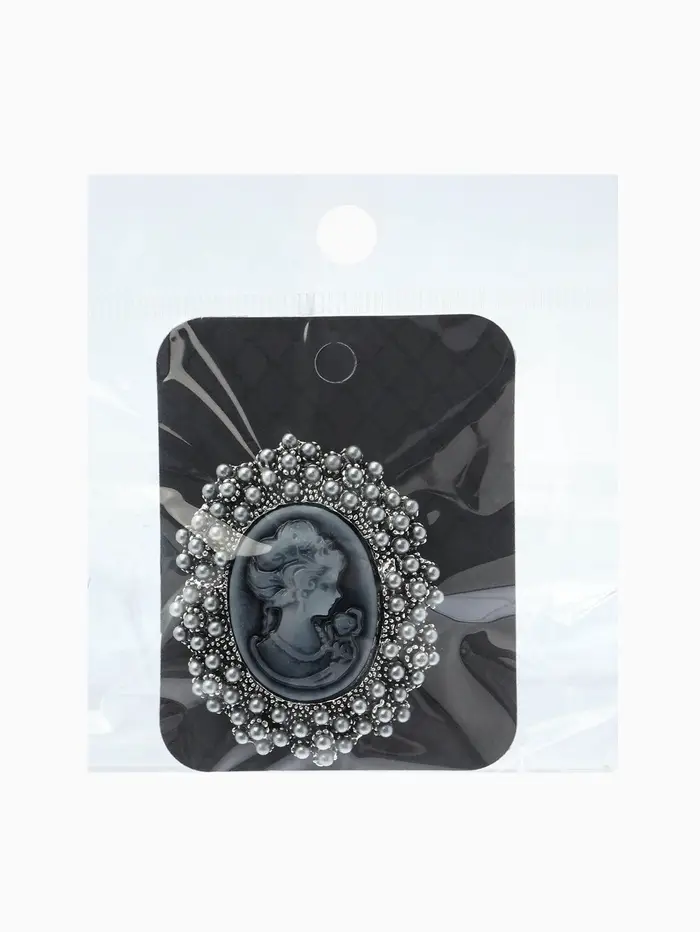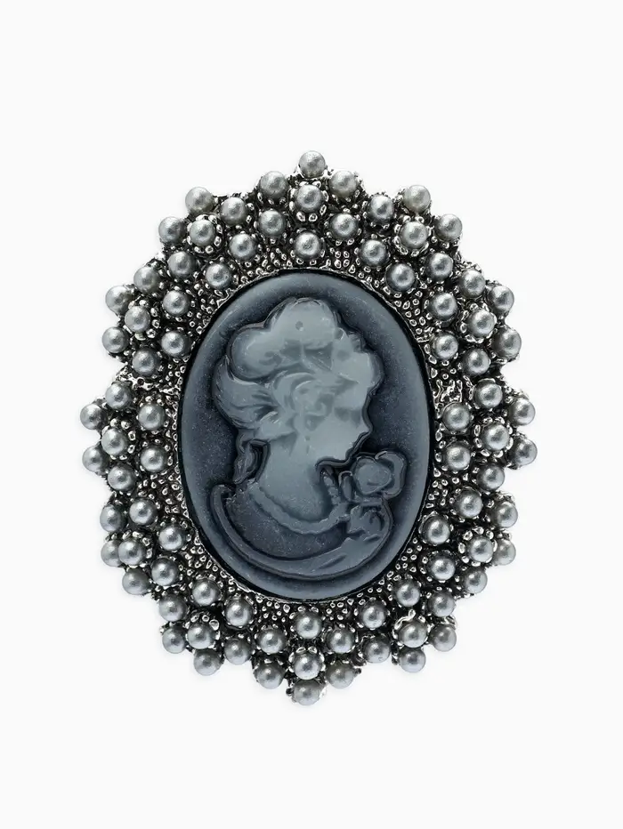 Брошь «Камея», в жемчуге, серая в чернёном серебре