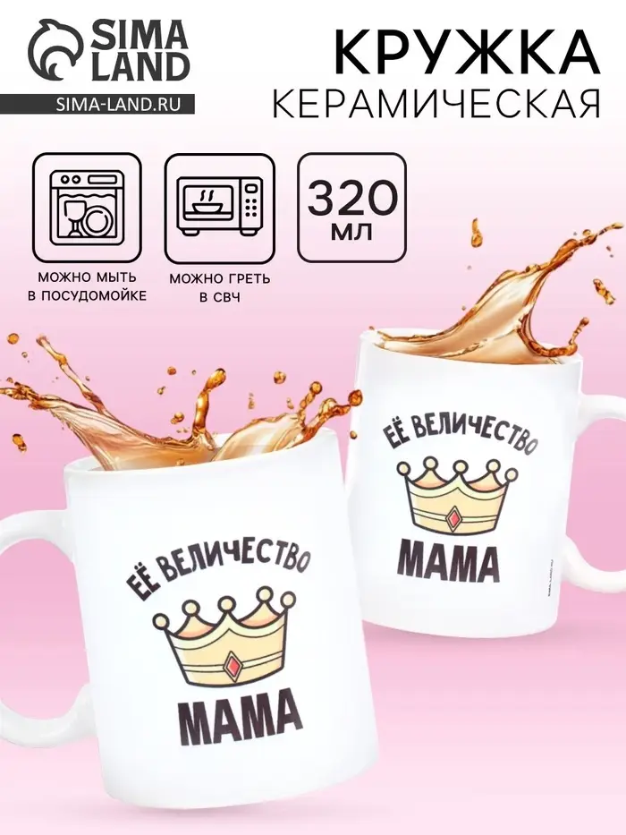 Керамическая кружка «Её величество мама» — это качественный и удобный аксессуар для подачи различных напитков.