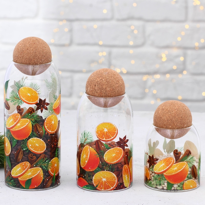 Набор банок стеклянных для сыпучих продуктов «Трио», 3 предмета: 350/550/750 мл, 9,5×10,5/15/19,8 см, цвет чёрный