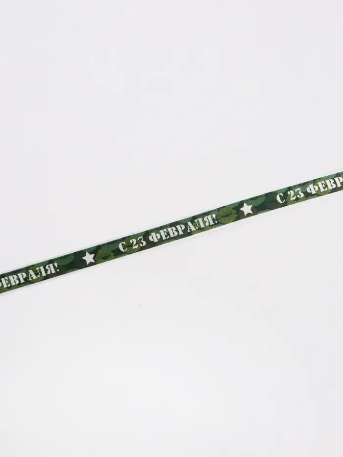 Лента атласная «С 23 Февраля!», 2.5 см × 22.5 (± 1) м, зелёная