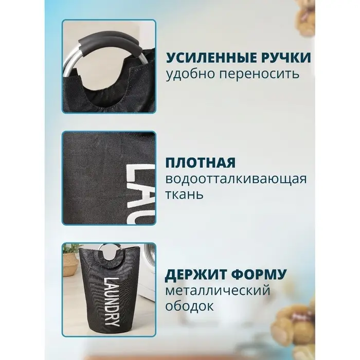 Корзина для белья Доляна «Модерн», с ручками, 30×58 см, чёрная