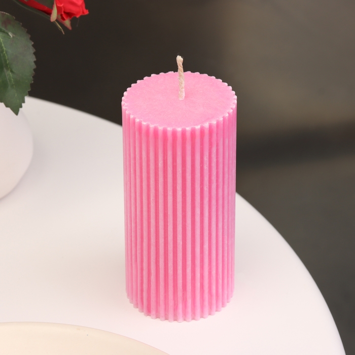 Свеча-цилиндр с гранями, 5х10 см, малиновая, 6 ч