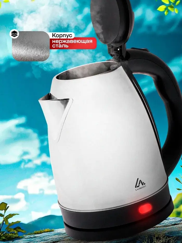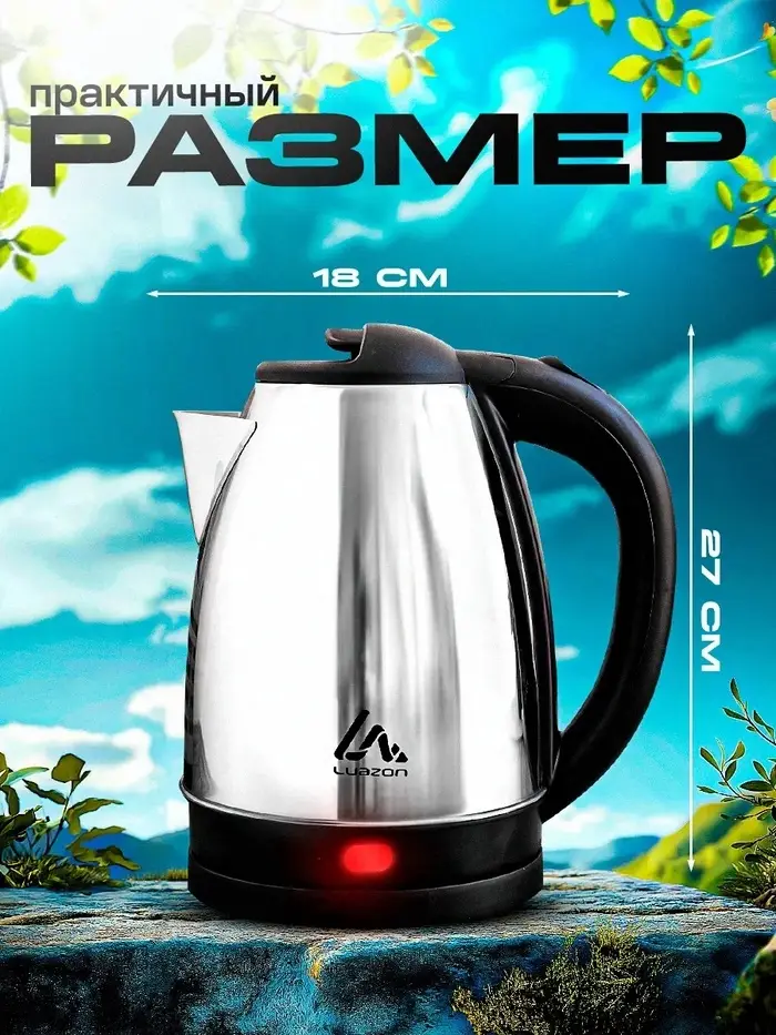 Насладитесь горячими напитками с электрическим чайником от Luazon. Он быстро вскипятит воду для приготовления чая, кофе, морса и других напитков. Благодаря качественным материалам чайник прослужит вам долгие годы. Его корпус выполнен из металла, поэтому во время кипячения вода не будет иметь неприятный привкус пластика. Ручка из термостойкого пластика не расплавится и обезопасит вас от ожогов.