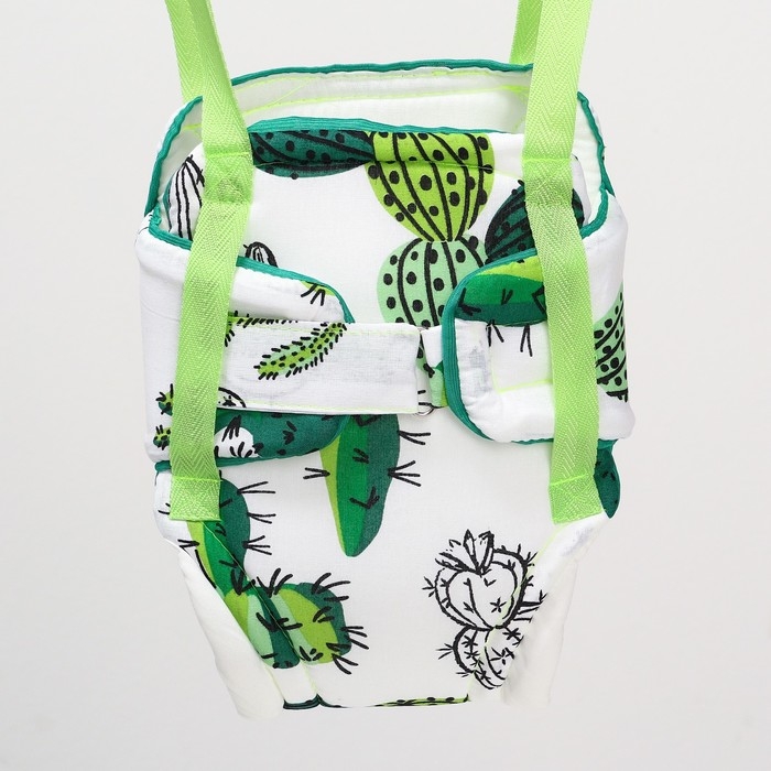 Посадите полугодовалого кроху в сиденье-штанишки. Малышу понравится активная игра, он будет подпрыгивать и качаться. Размер посадочного места можно настроить индивидуально, а за перекладину ребёнку будет удобно держаться.