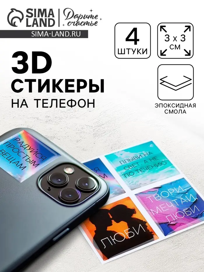 Объёмные 3D стикеры на телефон «Мечтай», 4 шт., 3×3 см