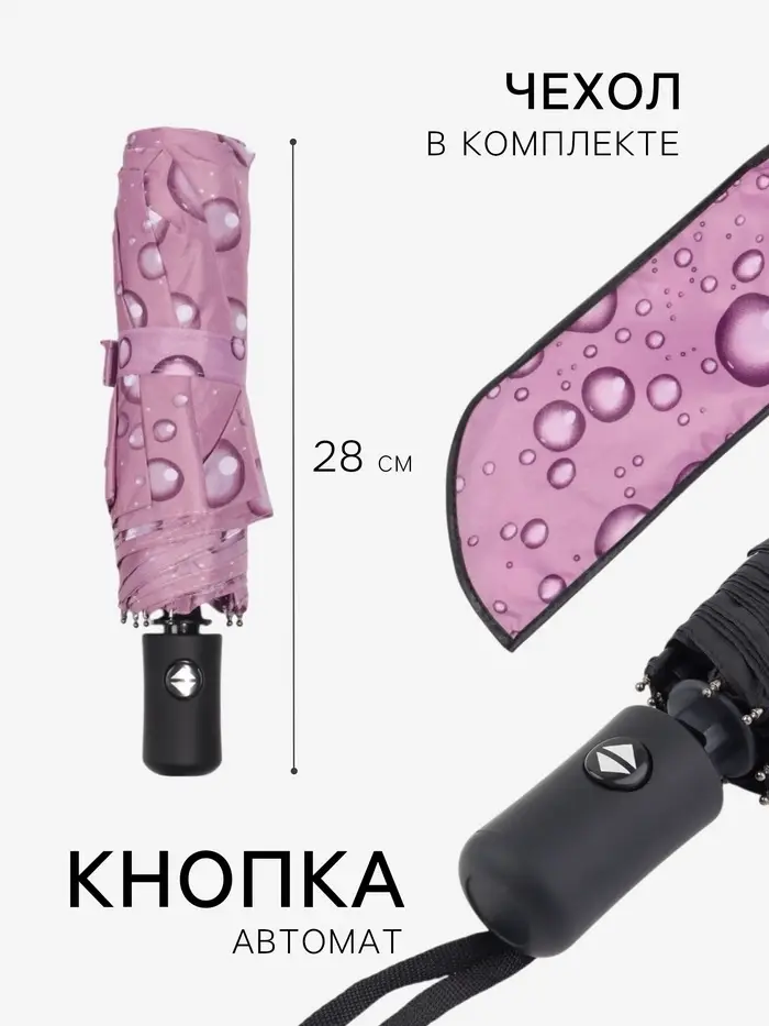 Потрясающий зонт будет Вашим верным помощником в дождливую погоду. Система данного зонта – автоматическая. От других моделей отличается простотой в использовании. Размеры зонта обеспечивают комфорт и защиту. Радиус внутри зонта (до ручки) = 47 см, поверху = 55 см. Прямая ручка удобно лежит в руке.