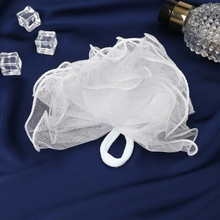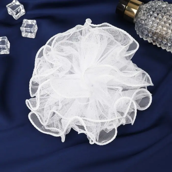Бант для волос на резинке «Школьница», волна жемчуг, d=9 см, белый