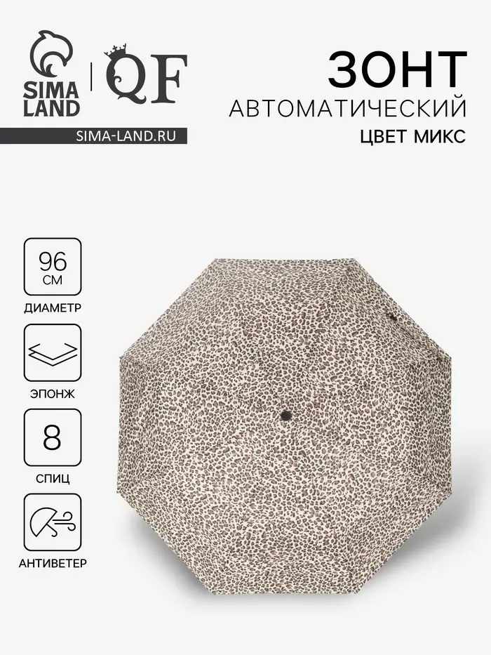 Зонт автоматический «Леопард», эпонж, 3 сложения, 8 спиц, R=48/55 см, d=96 см, МИКС
