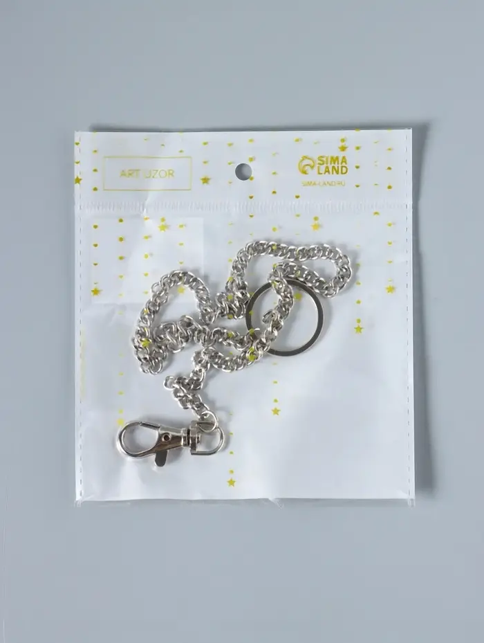 Кольцо для брелока на цепочке, с карабином, d=28 мм, 40 см, цвет серебряный
