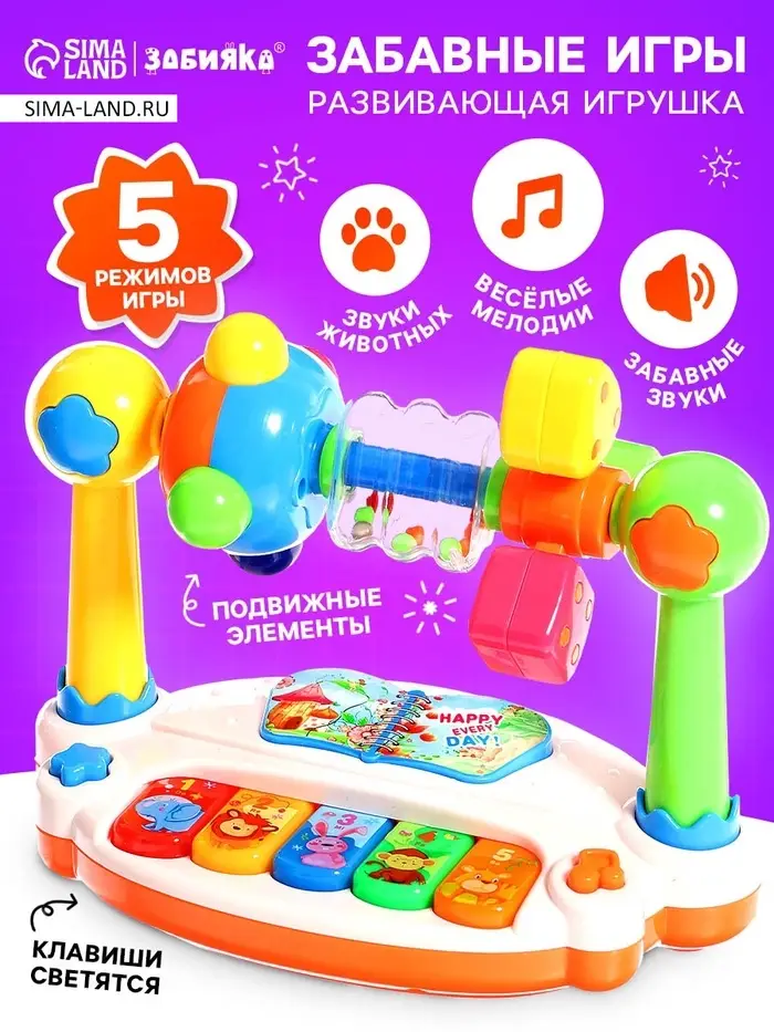 Развивающая игрушка ZABIAKA «Весёлые игры», звуковые и световые эффекты, с подвижными элементами