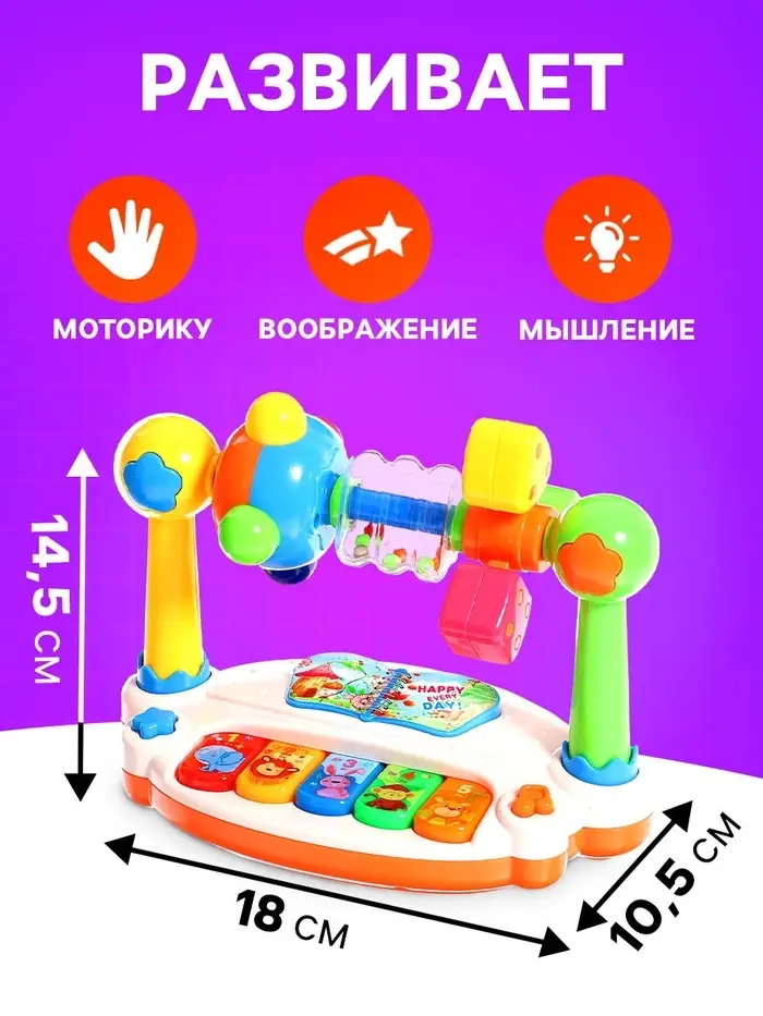 - Игровое пианино — позволяет малышу учить цвета и цифры в процессе игры, помогая развивать память и логику.