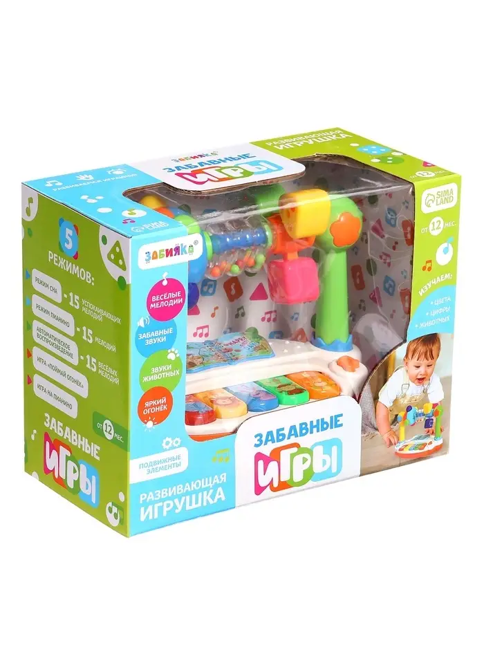 Развивающая игрушка «Весёлые игры» с яркими звуковыми и световыми эффектами предназначена для малышей от 12 месяцев и предлагает сразу пять режимов игры. В процессе игры ребёнок сможет изучать цвета, цифры и животных, развивать координацию и слуховое восприятие. Игрушка работает от трёх батареек типа АА (в комплект не входят), что позволяет брать её с собой в любые поездки.
