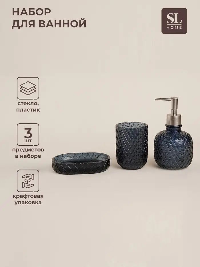Аксессуары для ванной SL Home, 3 предмета, дозатор, мыльница, стакан