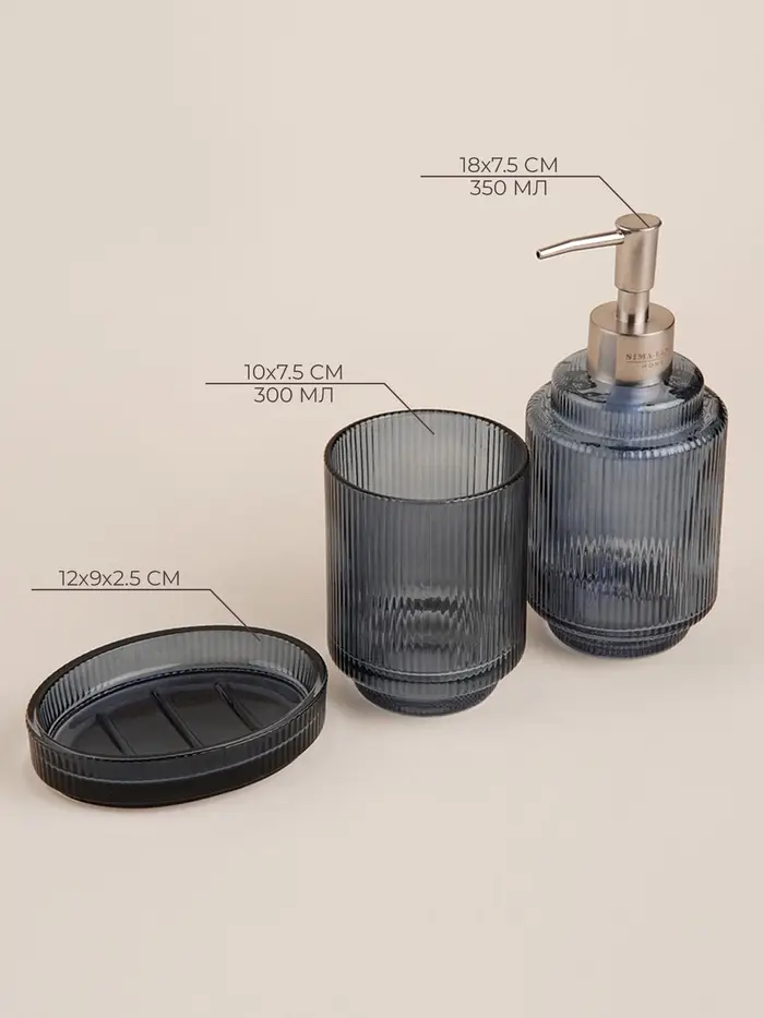 Аксессуары для ванной SL Home, 3 предмета: дозатор, мыльница, стакан