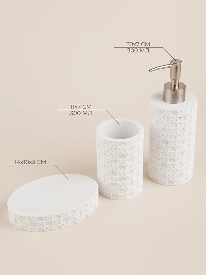 Этот набор станет идеальным выбором для тех, кто стремится к созданию комфортной и эстетически приятной обстановки в ванной комнате. Позвольте каждому вашему утру начинаться с удовольствия от использования стильных и практичных аксессуаров.