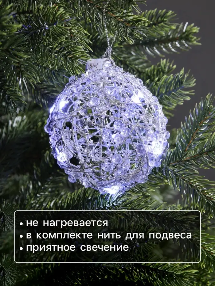 Подвеска световая «Снежок», 10 см, 10 LED, от батареек AG13×3, свечение белое