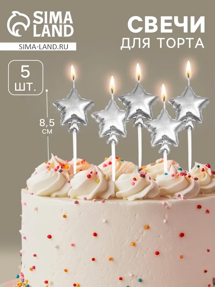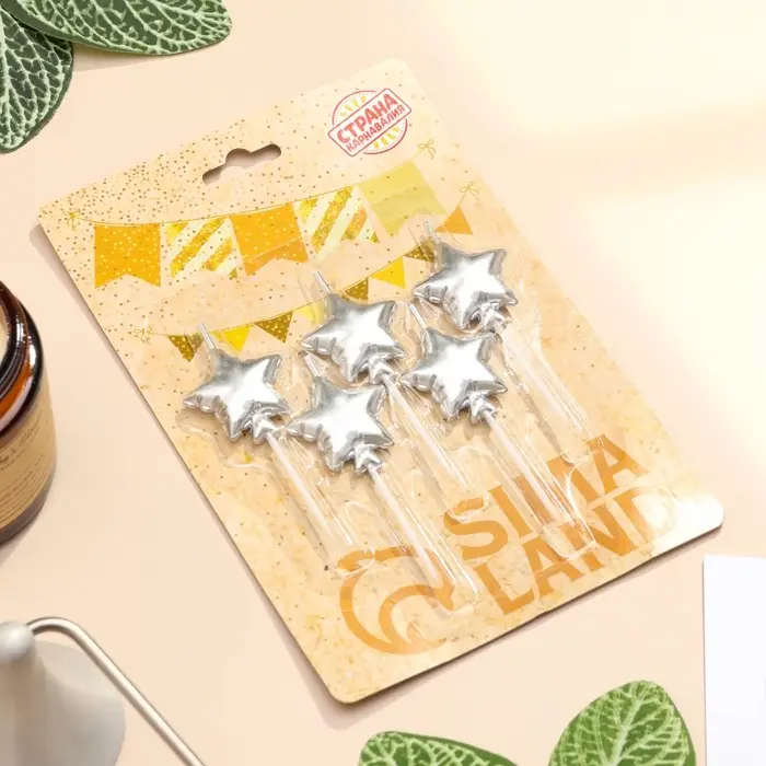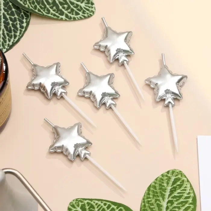Свечи для торта 5 шт. «Воздушный шарик. Звезда». серебряные