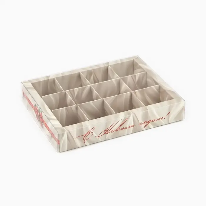 Коробка под 12 конфет с ячейками «Новогодний бант», 14.5×18.5×3 см
