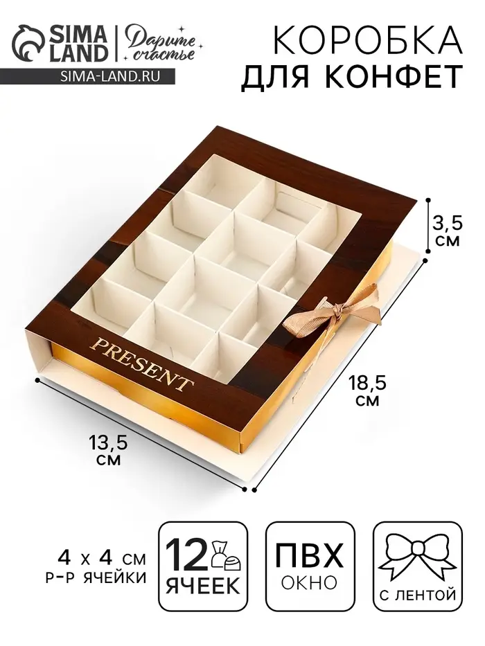 Коробка под 12 конфет с ячейками «Дерево» 18.5×13.5×3.5 см