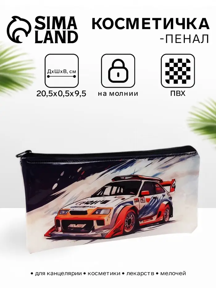 Косметичка-пенал на молнии, с изображением автомобиля, разноцветная