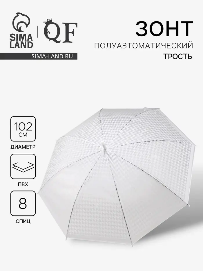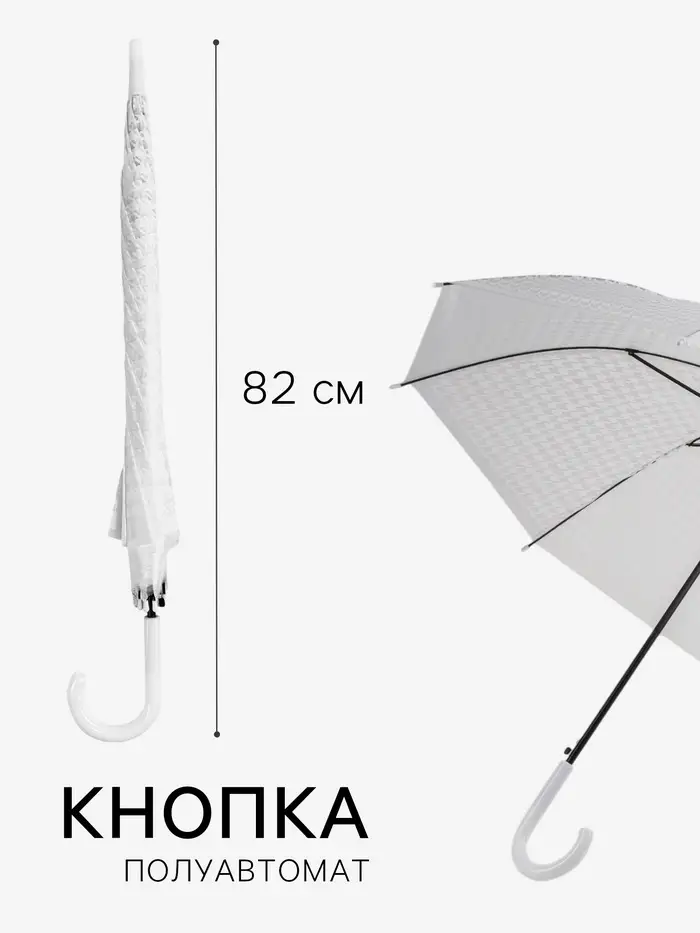 Зонт - трость полуавтоматический, 8 спиц, R=51/58 см, d=102 см, белый