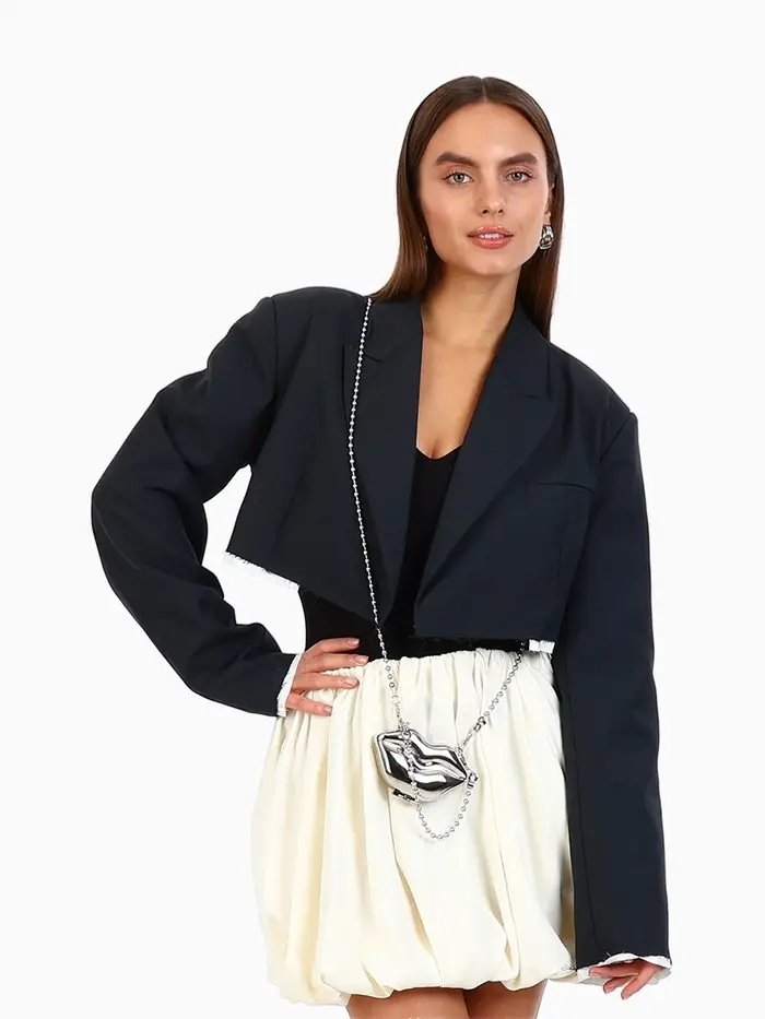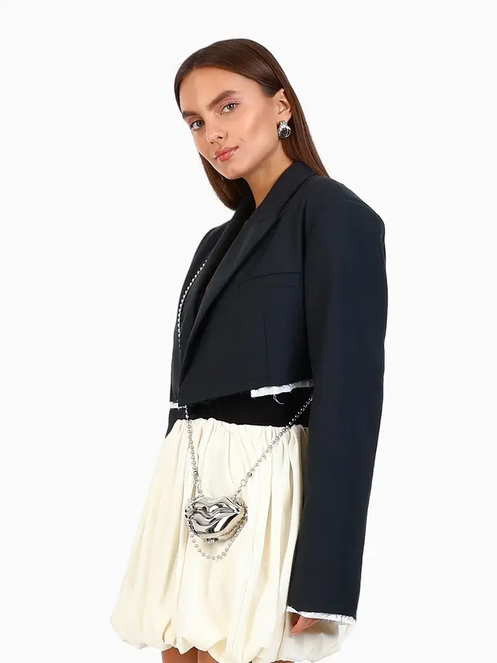 - Изысканный материал: Изготовленная из металла, сумка обладает жестким каркасом, что делает её долговечной и устойчивой к деформации. Серебряная фурнитура подчеркивает ее лаконичность.