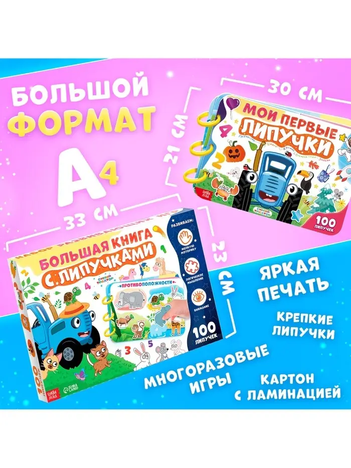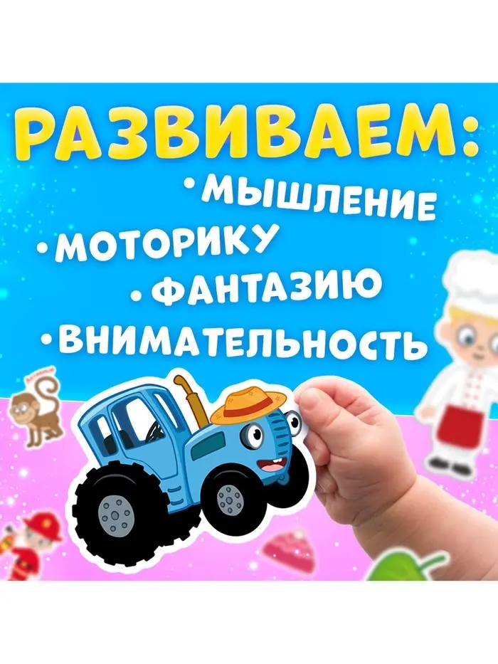 Книга с липучками «Синий трактор», А4, 100 липучек