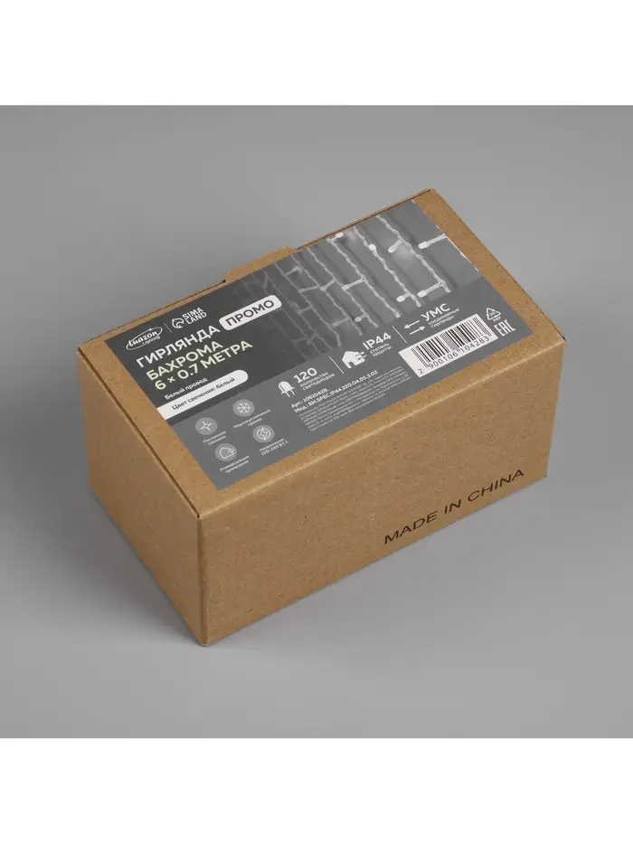Гирлянда «Бахрома» 6×0.7 м, IP44, УМС, белая нить, 120 LED, свечение белое, 220 В